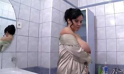 Mischievous milf rubs her big tits in a soapy bouncy bath