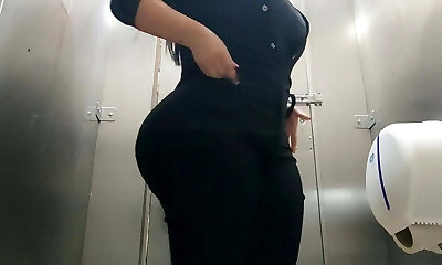 kamera im öffentlichen badezimmer fängt eine schöne üppige frau ein