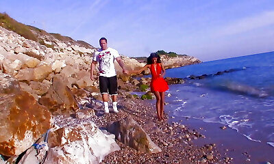 weißes mädchen wird am strand von 2 bbcs geschwärzt
