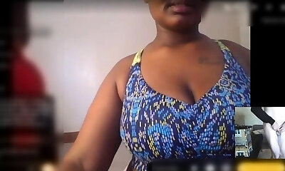 Curvy African loves her boobs squeezed