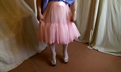 Lilac bridesmaid dress, pinkish petticoat and platform heels