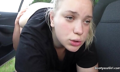 German first-timer bitch outdoor car-fuck and huge cumshot!