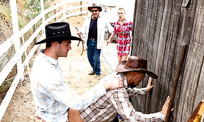 火辣的金发女郎第一次尝试三人行