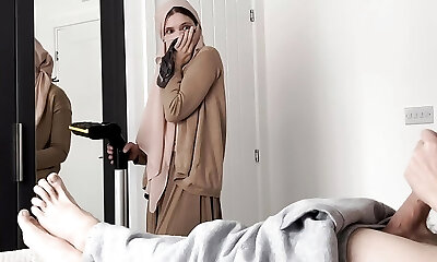 我在一个穿着头巾的穆斯林女仆面前拔出我的鸡巴。
