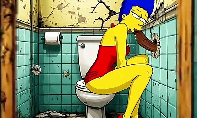 The Simpsons Porn Parody: Killer Cheating Wifey Marge Lets a Black Dude Fuck Her In The Public Rest Room