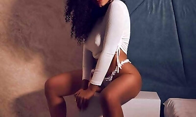 Horny ebony slut with an amazing oiled bubble butt gets the ultimate gusto being penetrated by a hump machine