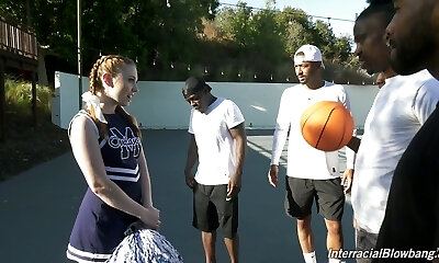 Black basketball team ravages deep throat of white cheerleader Arietta Adams