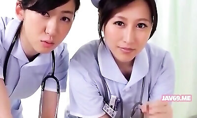 Doctor with king size milk cans Angela Milky rides on cock in front of nurses