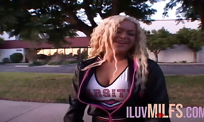 After practice a cheerleader gets a mighty dose of dick